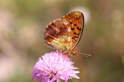 Daphne is quite common and widespread but its close relative the Lesser Marbled Fritillary (B. ino) seems to be less common and more generally found at altitude. They are not too difficult to tell apart as the ino upperside has heavier black continuous borders, whereas the daphne borders are lighter and usually not quite continuous.