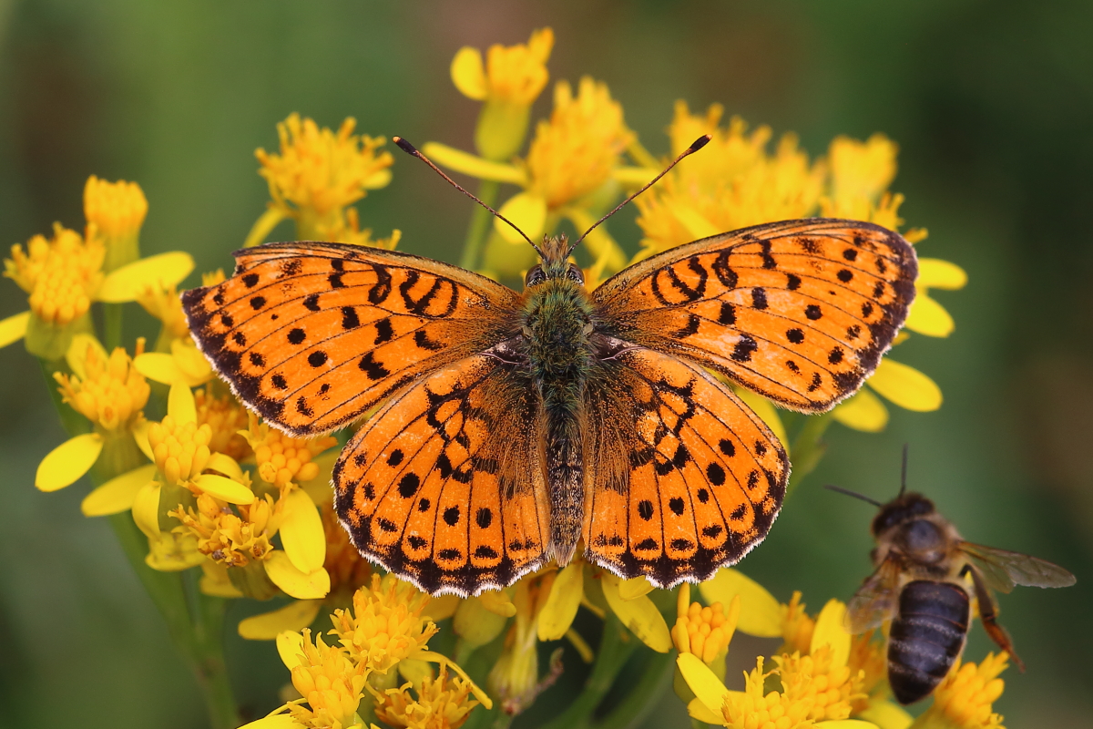 Ino is similar to, but usually smaller than, the Marbled Fritillary (B. daphne) although ino seems to be less common and more generally found at altitude and often in damp regions. They are not too difficult to tell apart and the key distinguishing features are described on the daphne page. More challenging is the task of distinguishing between ino and the Twin-spot Fritillary (B. hecate), and the identification clues are given on the hecate page. |