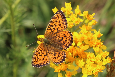 The upperside is a rather dull orange, even the male, but this is adequately compensated by the beautiful intricate underside.
