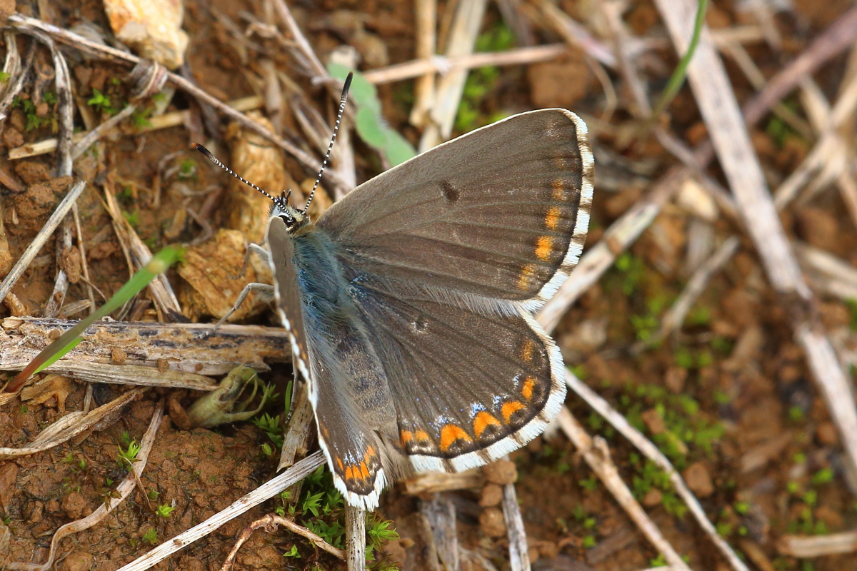 The female upperside is basically brown, as with most blues, but it has varying amounts of blue according to locality. Generally (but with exceptions) in my experience the female is plain brown at low altitudes but with increasing amounts of blue as the altitude increases, with a very blue form known as ceronus and intermediary forms which could perhaps be described as semi-ceronus.