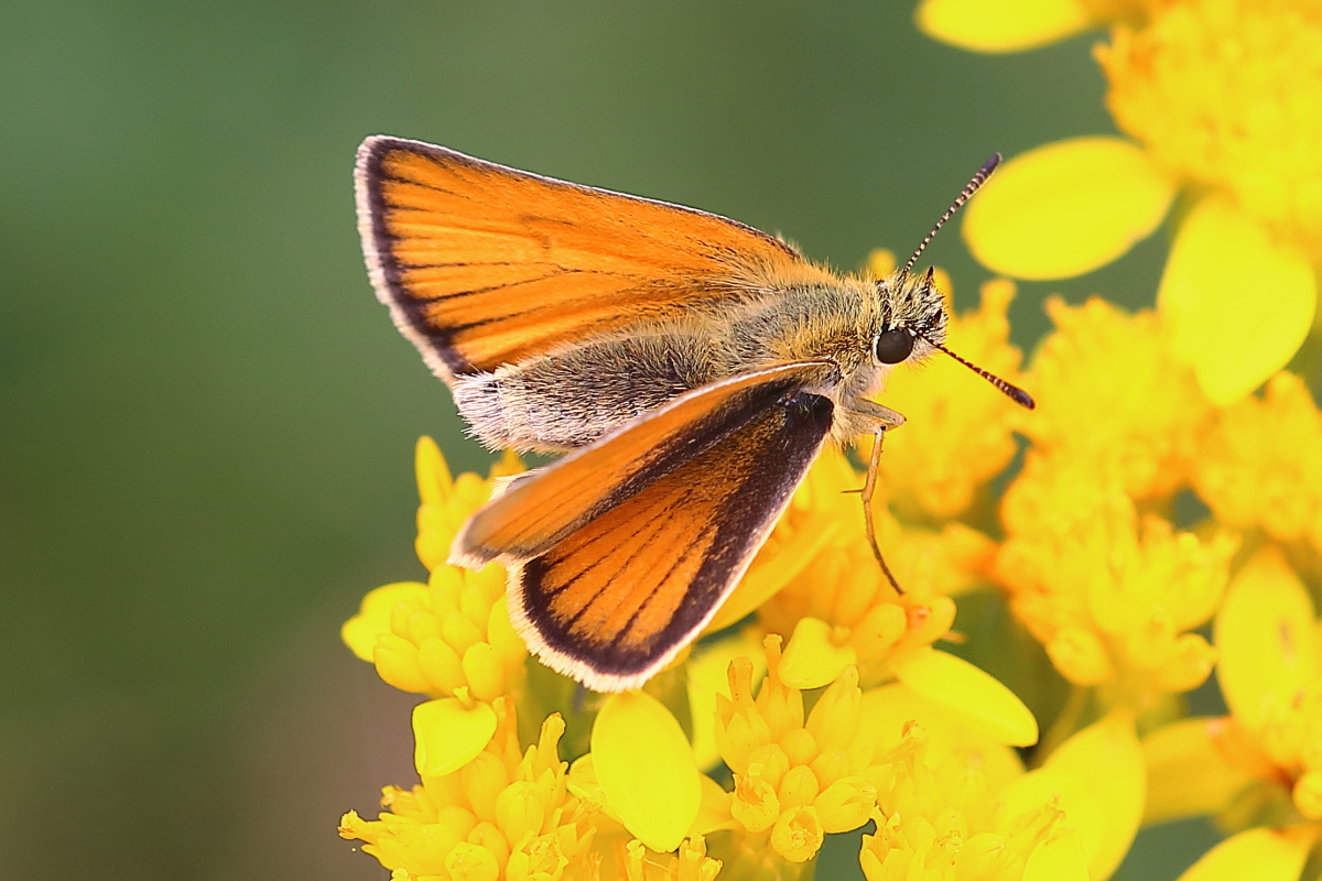 Until 2006, I had never studied sylvestris closely enough to check if certain specimens were in fact Essex Skippers (T. lineola). Curiously enough, I now find that most that I attempt to identify appear to be lineola, hence the paucity of photographs of sylvestris. |