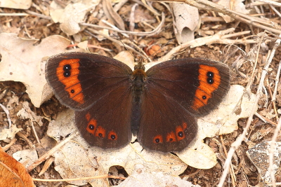 a female, with an unusually narrow upf red post-discal band (for a female) but large ocelli, and a surprisingly poorly developed uph red band and ocelli. |