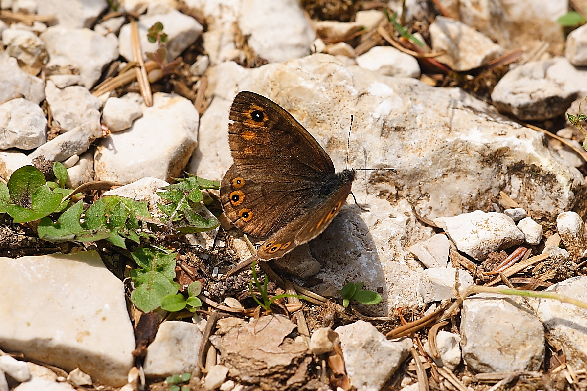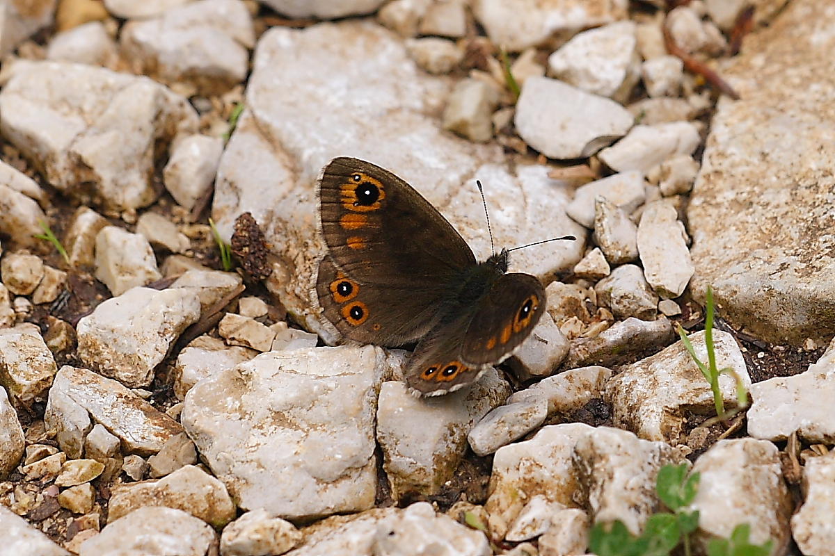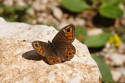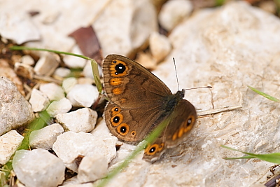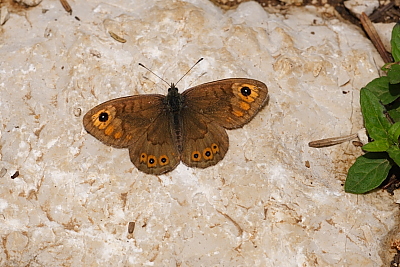 It can de identified for certain by the uph transverse discal line, which does not occur in the very similar male of the Large Wall (L. maera) with which it could otherwise easily be confused. |