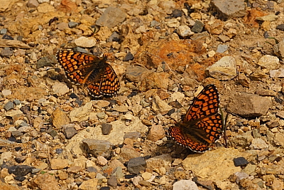 33054 | F | a female, rather less orange than normal, but the colour contrast between the bands is clear. It was being courted by a male athalia, just to demonstrate that the butterflies themselves have identification difficulties from time to time. The female deione had no problem as it rejected the advance. | 1000 |
