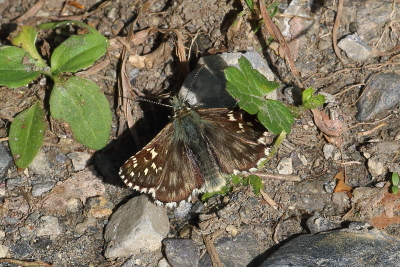I am fairly certain that this is a male alveus as I also have an underside shot and it was ID'd with certainty by a local expert. The upperside markings are just about spot-on for alveus and I recall that it was a large Pyrgus. |