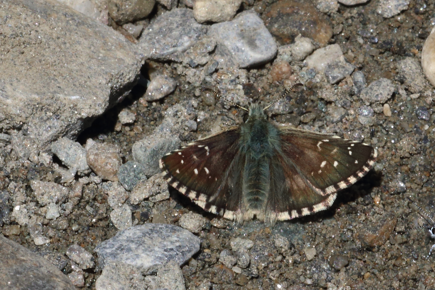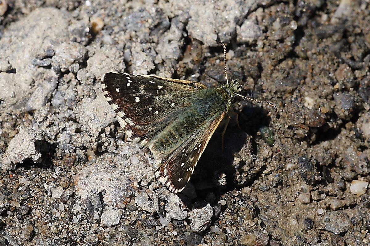 53081 | M | a fresh male, rather warmer brown in colour, and slightly more strongly marked than would be the norm for alveus. It was puddling in company with several other Pyrgus species and was noticeably larger, thus living up to its name. | 2020 |