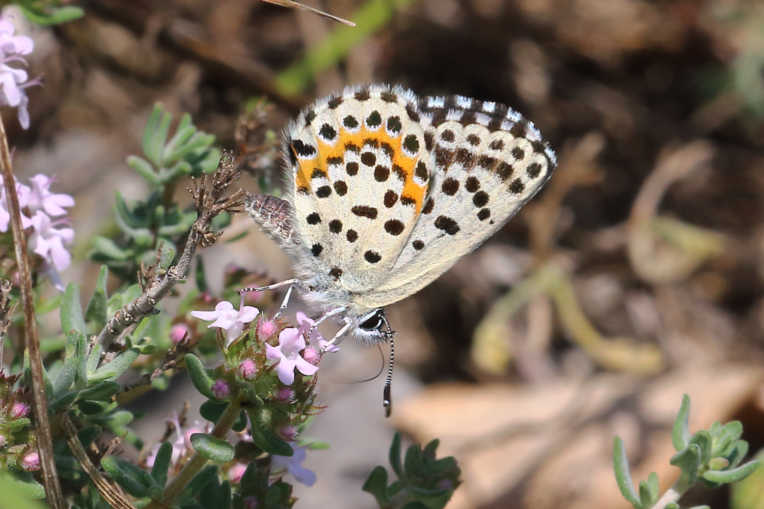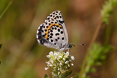 It is a quite localised butterfly of southern Europe, univoltine and with a quite early flight season. However, I have seen it in early July in the same location as others on this page and, in view of its freshness, it appears to be a second generation. |